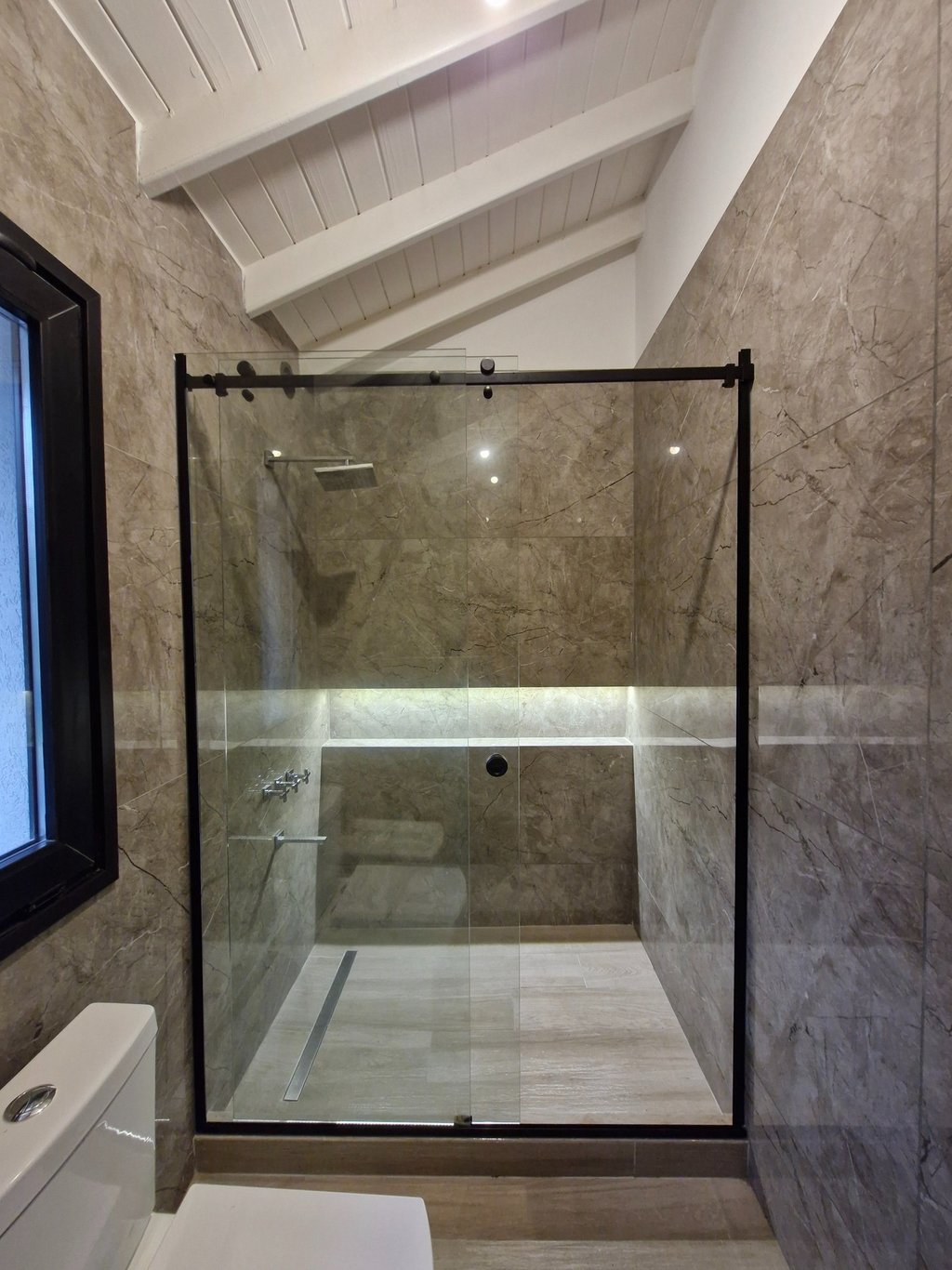 Sistema corredizo con herrajes expuestos en acero inoxidable que combina funcionalidad, carácter y un diseño contemporáneo.